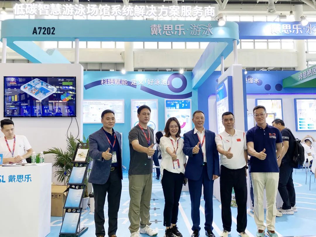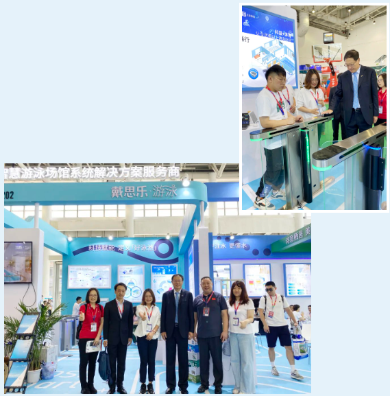 展會期間,中國體育用品業(yè)聯(lián)合會主席李燁、世界休閑體育協(xié)會輪值主席、首都體育學(xué)院教授博導(dǎo)李相如教授等領(lǐng)導(dǎo)蒞臨戴思樂展位參觀指導(dǎo),并對戴思樂在“低碳智慧游泳場館”建設(shè)方面的成果,以及健康、低碳、智慧的全域水系統(tǒng)解決方案給予了充分肯定和高度認(rèn)可。