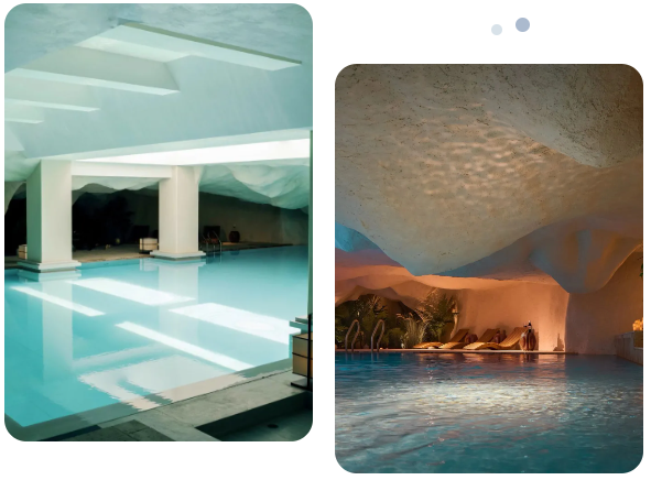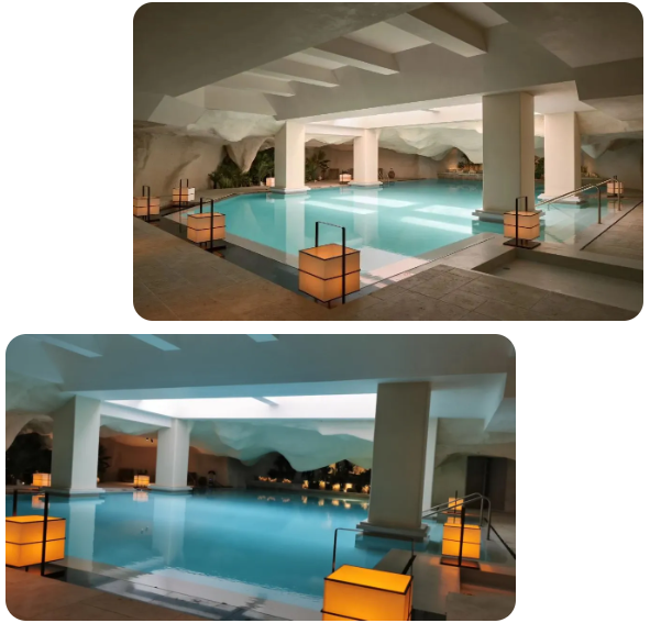 走進(jìn)這個猶如溶洞般的泳池,健康的水質(zhì)、舒適的水溫、清新的空氣……每一項細(xì)致入微的體驗都展現(xiàn)出了戴思樂集團(tuán)在泳池水處理與空氣治理領(lǐng)域的一貫實力。