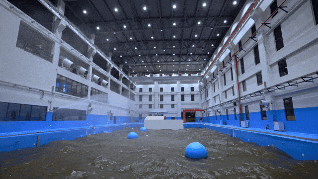 環(huán)境仿真方面,臺風(fēng)訓(xùn)練館配備了造浪球、風(fēng)機(jī)、特制燈光、音響等設(shè)備,能夠讓場館內(nèi)達(dá)到環(huán)境最大風(fēng)力≥12級,最大降雨量≥50mm/h,最大環(huán)境噪音≥120db,最大造浪高度≥1.2m,基本復(fù)現(xiàn)最大12級臺風(fēng)災(zāi)害下,風(fēng)、雨、浪等復(fù)雜的救援環(huán)境。