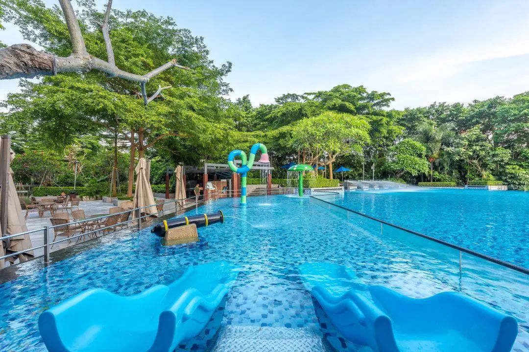 下午想去東部華僑城撒歡?玩累了回來,室外池的水上滑梯正等著你來一場“浪花沖刺”……